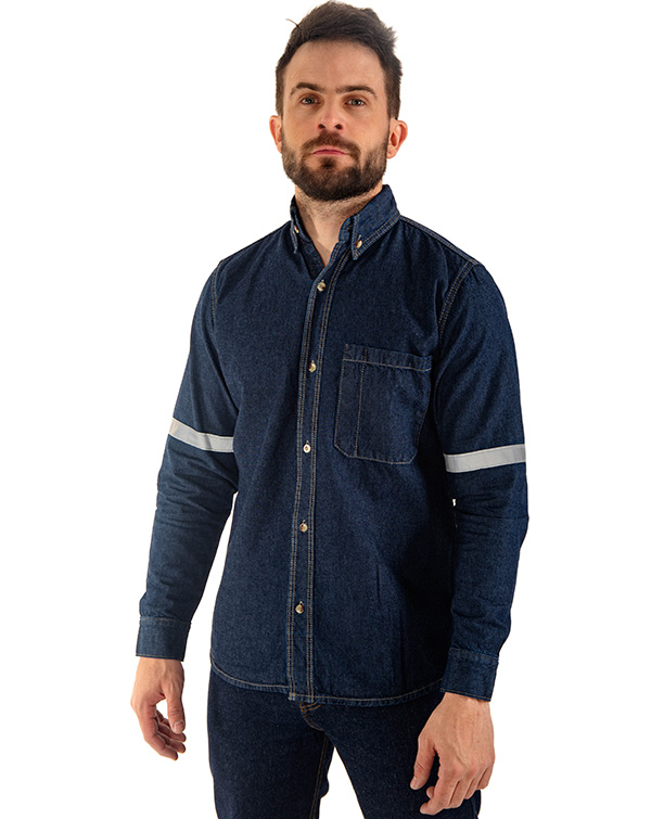 Camisa confeccionada en denim suave, ideal para trabajos industriales o uso corporativo casual. Puede incluir bordado personalizado en pecho. Resistente y elegante a la vez.